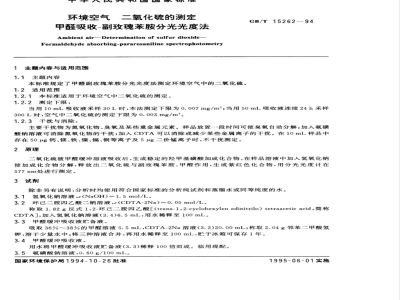 本标准规定了甲醛副玫瑰苯胺分光光度法测定环境空气中的二氧化硫。1.2适用范围