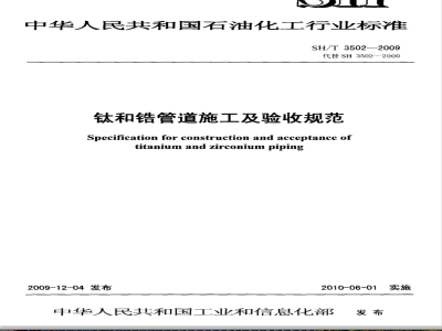 本规范规定了钛和锆管道的施工技术、质量标准及检验要求。SH/T3502-—2009