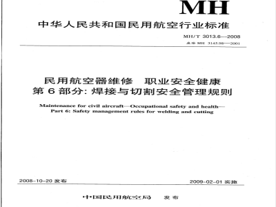 MH/T 3013.6-2008 民用航空器维修标准 职业安全健康 第6部分:焊接与切割安全管理规则 MH/T3013.6-2008 标准下载解压密码:www.bzxz.net