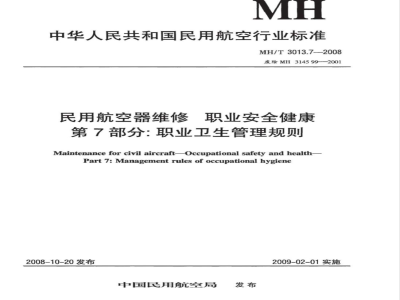 MH/T 3013.7-2008 民用航空器维修标准 职业安全健康 第7部分:职业卫生管理规则 MH/T3013.7-2008 标准下载解压密码:www.bzxz.net