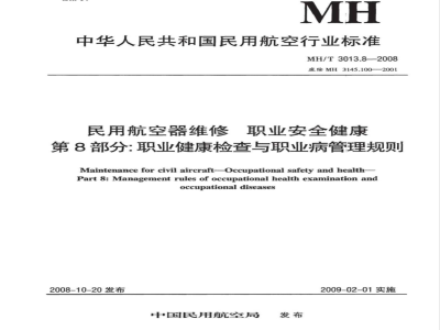 MH/T 3013.8-2008 民用航空器维修标准 职业安全健康 第8部分:职业健康检查与职业病管理规则 MH/T3013.8-2008 标准下载解压密码:www.bzxz.net