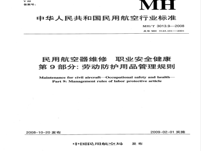 MH/T 3013.9-2008 民用航空器维修标准 职业安全健康 第9部分:劳动防护用品管理规则 MH/T3013.9-2008 标准下载解压密码:www.bzxz.net