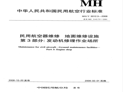MH/T3012的本部分规定了民用航空器(以下简称航空器)发动机修理作业场所设施、设备的安全技术要求。