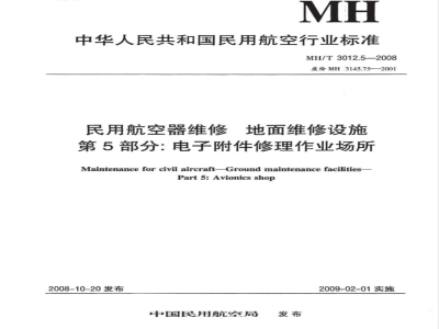 MH/T 3012.5-2008 民用航空器维修标准 地面维修设施 第5部分:电子附件修理作业场所 MH/T3012.5-2008 标准下载解压密码:www.bzxz.net