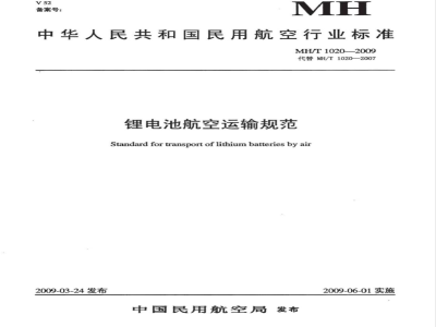 MH/T 1020-2009 锂电池航空运输规范 MH/T1020-2009 标准下载解压密码:www.bzxz.net