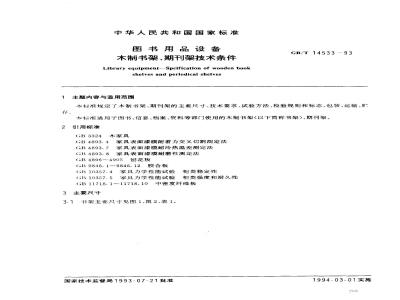 中文名称:图书用品设备 木制书架,期刊架技术条件