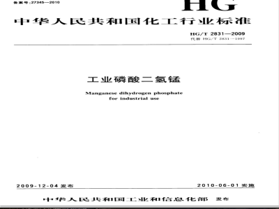 本标准代替HG/T2831一1997《工业磷酸二氢锰》。本标准与HG/T2831-1997《工业磷酸二氢锰》的主要技术差异如下:HG/T2831—2009