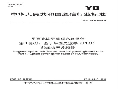 YD/T 2000.1-2009 平面光波导集成光路器件 第1部分:基于平面光波导(PLC)的光功率分路器 YD/T2000.1-2009 标准下载解压密码:www.bzxz.net