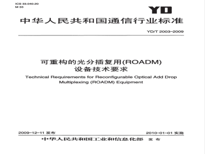 Technical Requirements for Reconfigurable Optical Add DropMultiplexing(ROADM)Equipment2009-12-11发布