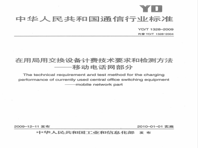 中文名称:在用局用交换设备计费技术要求和检测方法——移动电话网部分