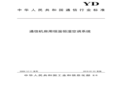 YD/T 2061-2009 通信机房用恒温恒湿空调系统 YD/T2061-2009 标准下载解压密码:www.bzxz.net