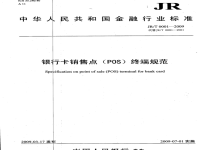JR/T 0001-2009 银行卡销售点(POS)终端规范 JR/T0001-2009 标准下载解压密码:www.bzxz.net