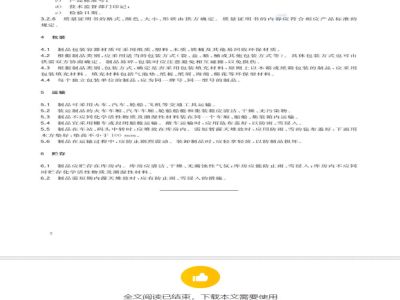 包装填充材料。填充材料包括气泡垫、纸板、纸屑、海绵、棉花等环保型材料。4.4每个独立包装单位的制品,应为同一牌号、同一型号的制品5运输