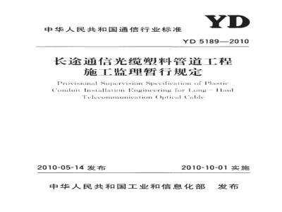 YD 5189-2010 长途通信光缆塑料管道工程施工监理暂行规定 YD5189-2010 标准下载解压密码:www.bzxz.net