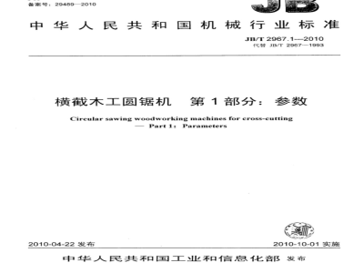 JB/T2967《横截木工圆锯机》由两部分组成:第1部分:参数;