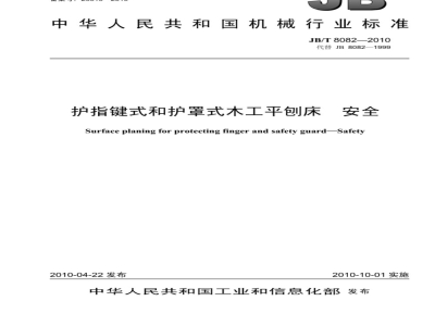 本标准代替JB8082一1999《护指键式和护罩式木工平创床安全》。
