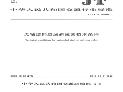 JT/T 771-2009 无粘结钢绞线斜拉索技术条件 JT/T771-2009 标准下载解压密码:www.bzxz.net