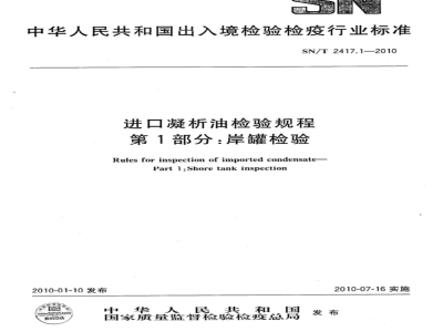 SN/T2417《进口凝析油检验规程》系列标准共分为2部分:第1部分:岸罐检验;