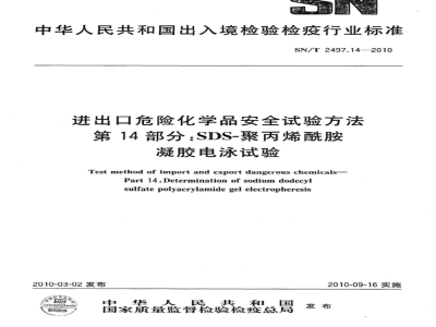 SN/T 2497.14-2010 进出口危险化学品安全试验方法 第14部分:SDS-聚丙烯酰胺凝胶电泳试验 SN/T2497.14-2010 标准下载解压密码:www.bzxz.net