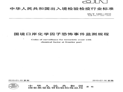 SN/T 1466-2010 国境口岸化学因子恐怖事件监测规程 SN/T1466-2010 标准下载解压密码:www.bzxz.net