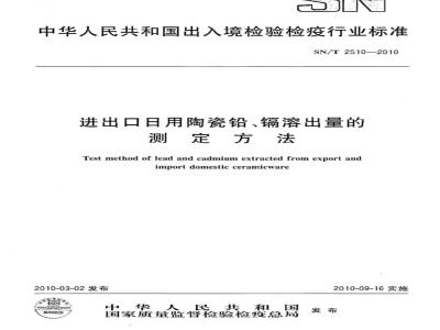 SN/T 2510-2010 进出口日用陶瓷铅、镉溶出量的测定方法 SN/T2510-2010 标准下载解压密码:www.bzxz.net
