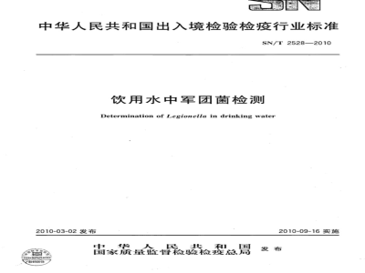 SN/T 2528-2010 饮用水中军团菌检测 SN/T2528-2010 标准下载解压密码:www.bzxz.net