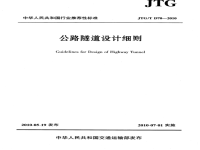 Guidelines for Design of Highway TunnelJTG/TD702010
