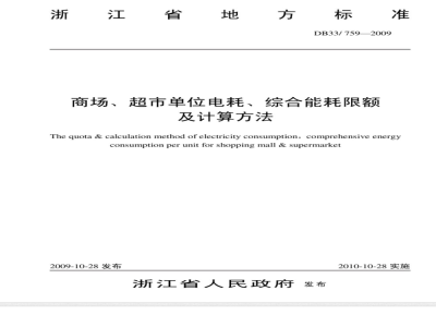 DB33/ 759-2009 商场、超市单位电耗、综合能耗限额及计算方法 DB33/759-2009 标准下载解压密码:www.bzxz.net