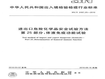 SN/T 2497.25-2010 进出口危险化学品安全试验方法 第25部分:体液的免疫功能试验 SN/T2497.25-2010 标准下载解压密码:www.bzxz.net
