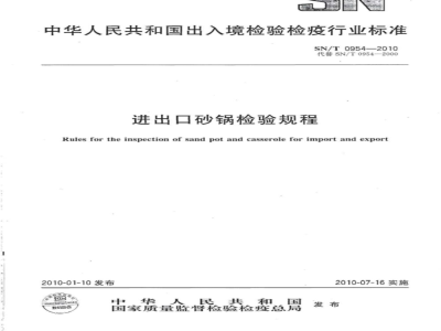 SN/T 0954-2010 进出口砂锅检验规程 SN/T0954-2010 标准下载解压密码:www.bzxz.net