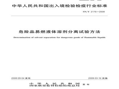 危险品易燃液体溶剂分离试验方法本标准规定了危险品易燃液体溶剂分离试验的材料、试验步骤及试验结果SN/T2176—2008