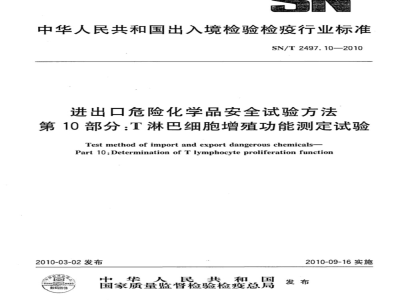 SN/T 2497.10-2010 进出口危险化学品安全试验方法 第10部分:T淋巴细胞增殖功能测定试验 SN/T2497.10-2010 标准下载解压密码:www.bzxz.net