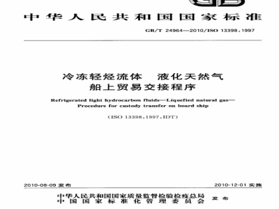 GB/T24964—2010/IS013398:1997本标准等同采用ISO13398:1997第一版(英文版)《冷冻轻烃流体本液化天然气船上贸易交接程