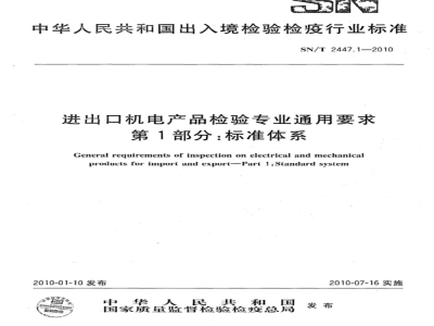 SN/T2447《进出口机电产品检验专业通用要求》系列标准共分为3部分;第1部分:标准体系;