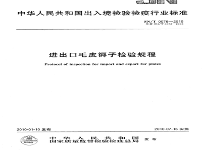 SN/T 0076-2010 进出口毛皮褥子检验规程 SN/T0076-2010 标准下载解压密码:www.bzxz.net