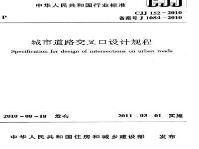 CJJ 152-2010 城市道路交叉口设计规程 CJJ152-2010 标准下载解压密码:www.bzxz.net