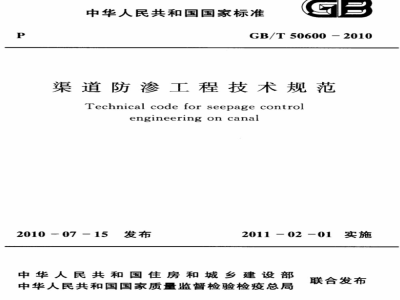 GB/T 50600-2010 渠道防渗工程技术规范 GB/T50600-2010 标准下载解压密码:www.bzxz.net