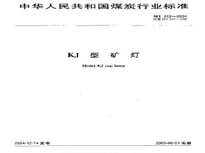 本标准规定了KJ型矿灯的产品分类、要求、试验方法、检验规则、标志、包装、运输及贮存。本标准适用于KJ型矿灯(以下简称矿灯)。 MT 242-2004 KJ型矿灯 MT242-2004 标准下载解压密码:www.bzxz.net