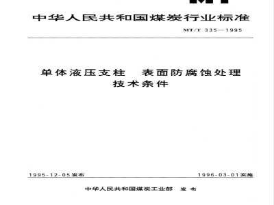 本标准规定了矿用单体液压支柱表面防腐蚀处理技术要求、试验方法、检验规则。本标准适用于矿用单体液压支柱各零部件的表面防腐蚀处理。 MT/T 335-1995 单体液压支柱 表面防腐蚀处理技术条件 MT/T335-1995 标准下载解压密码:www.bzxz.net