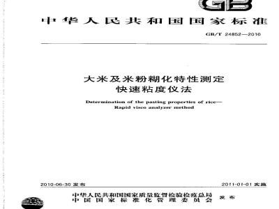 GB/T 24852-2010 大米及米粉糊化特性测定快速粘度仪法