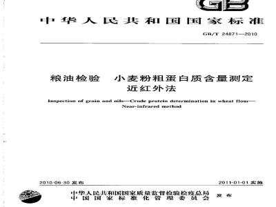 GB/T 24871-2010 粮油检验小麦粉粗蛋白质含量测定近红外法
