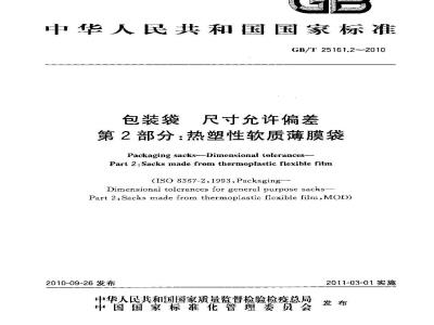 GB/T 25161.2-2010 包装袋尺寸允许偏差热塑性软质薄膜袋