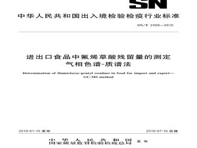 本标准规定了进出口食品中氟烯草酸残留量的气相色谱-质谱测定方法SN/T2459—2010