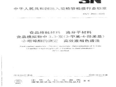 食品模拟物中3.3-双(3用基4凝茶基)-2·剂腺酮的测定高效浓柜色增SN/T 2552
