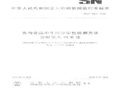 中文名称:畜肉食品中牛成分定性检测方法 实时荧光PCR法