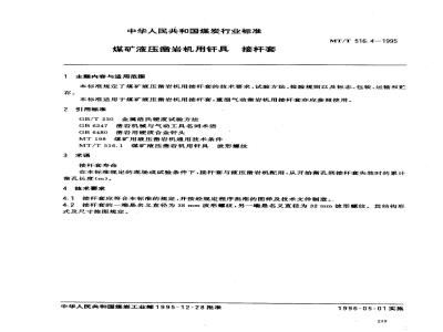 本标准规定了煤矿液压凿岩机用接杆套的技术要求、试验方法、检验规则以及标志、包装、运输和贮存。本标准适用于煤矿液压凿岩机用接杆套,重型气动凿岩机用接杆套亦应参照使用。 MT/T 516.4-1995 煤矿液压凿岩机用钎具 接杆套 MT/T516.4-1995 标准下载解压密码:www.bzxz.net