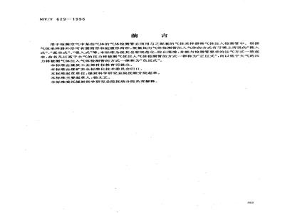 用于检测空气中某些气体的气体检测管必须用与之配套的气体采样将气体注入检測管中。根据气体采样器外形可有圆简形和蛇腹形两种,根据其向气体检测管注入气体的方式有习惯上所说的“推入式”、“真空式”“吸入式”等。本标准为使其名称规范化,防止混滑,并能与检测管要求的注气方式一致起来,命名凡以高于大气的压力将被测气体注入气体检测管的方试一律称为“正压式”,而以低于大气的压力将被测气体注人气体检测管的方式一律称为“负压式”。本标准由煤炭工业部科技教育司提出。本标准由煤矿安全标准化技术委员会归口。本标推起草单位:煤炭科学研究总院抚顾分院起草。本标准主要起草人:杨文正。