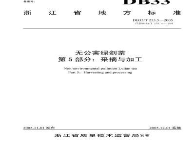 本部分为DB33/253-2005《无公害绿剑茶》的第5部分,本部分代替DB33/T253.41999《无公