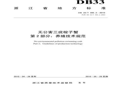 DB33/395《无公害三疣梭子蟹》分为四个部分:第1部分:苗种生产技术规范