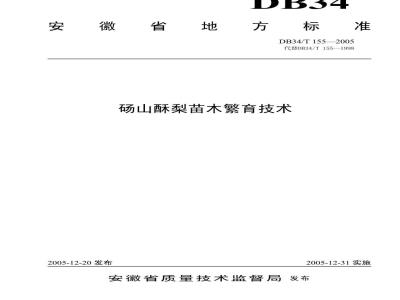 本标准是对DB34/T155-1998《砀山酥梨苗木繁育技术》的修订。本标准自2005年12月31日实施。本标准由砀山县质量技术监督局、山县园艺场提出。本标准主要起草人:朱爱民、蒋银萍。http://foodmate.net/DB34/T155—2005